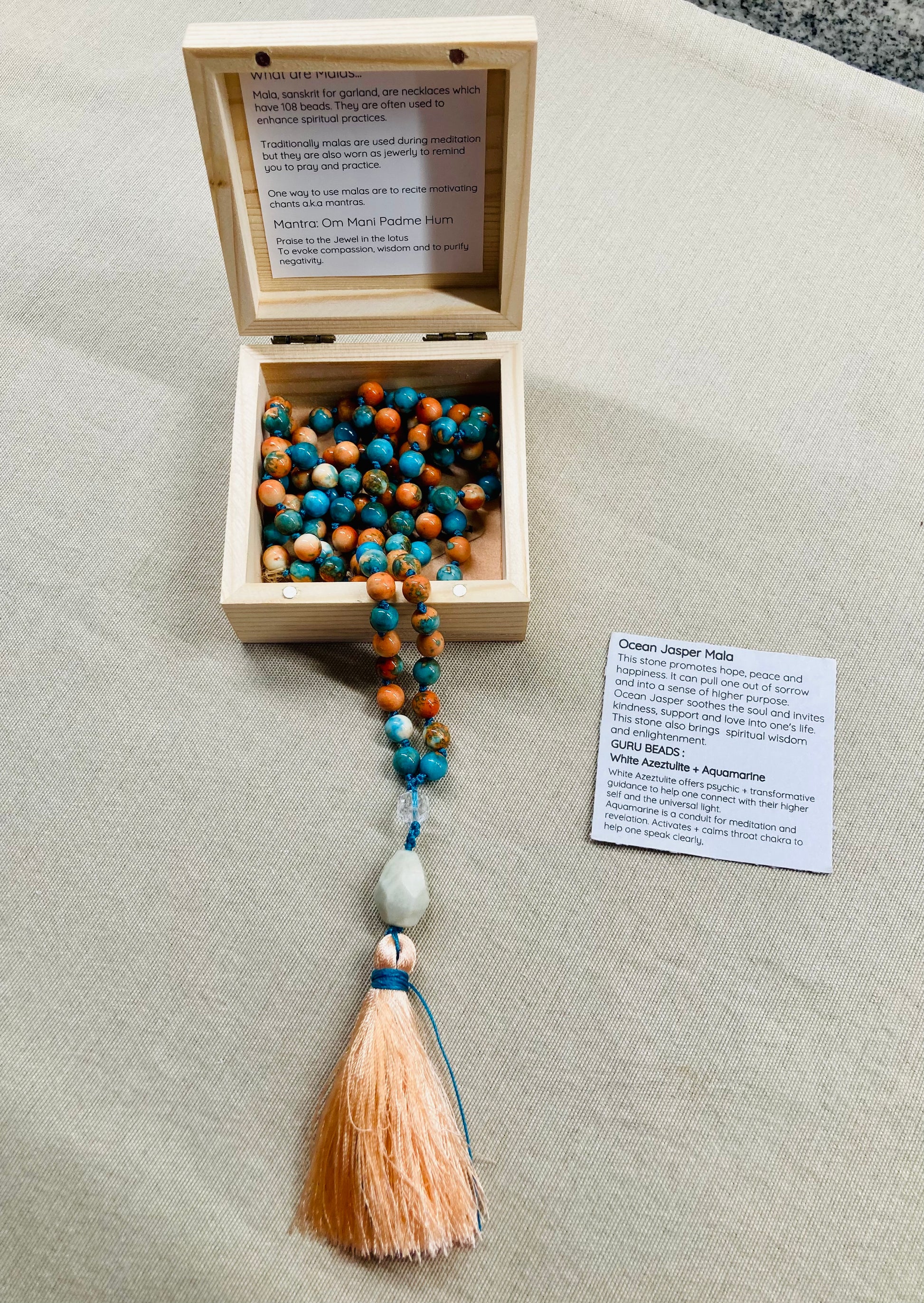This is an exquisite, handcrafted traditional prayer Mala made with 108 prayerfully strung beads. The gemstone bead size is 8mm.